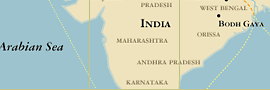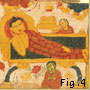 Scenes from the life of the historical Buddha, Shakyamuni, are a popular subject in Buddhist art. According to tradition, Siddhartha ("he who achieves his goal"), the founder of Buddhism, was born a prince of the Shakya clan in 563 B.C.E. in what is now southern Nepal (Fig. 2). Confined by his father to the palace grounds so that he would not become exposed to anything that might deter him from becoming the next ruler, Siddhartha first visited the outside world at the age of twenty-nine. Moved by the suffering he saw, he abandoned his luxurious existence for a life of ascetic practice and sought to understand why we should be born to a life of physical decay, sickness, and death. He spent six years as an ascetic, attempting to conquer the innate appetites for food, sex, and comfort. Near death from vigilant fasting, he was offered a bowl of rice from a young girl. After accepting it, he had a revelation that physical austerities were not the means to achieve spiritual liberation. He then sat and meditated beneath a pipal tree (Ficus religiosa) and reached enlightenment in one night (Fig. 3). That tree became known as the "enlightenment" (bodhi) tree. He set about teaching others what he had learned, encouraging people to follow a path he called "The Middle Way," a path of balance rather than extremism. Shakyamuni Buddha ("sage of the Shakya clan") presented himself only as a teacher and not as a god or object of worship. Traditional accounts say that he died at the age of eighty, in 483 B.C.E (Fig. 4)