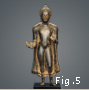 The Gupta empire unified a large portion of northern India, from coast to coast, and the political stability that ensued encouraged a cultural florescence. The Gupta style, which idealized the body according to literary metaphors (lips like lotus petals, a nose like a parrot's beak, a chin like a mango stone, etc.), was transmitted abroad by images (Fig. 5). The figure's graceful and relaxed posture, downward-looking eyes, and diaphanous robes that reveal the body underneath can be seen on images spread widely throughout Asia. The Gupta stylistic idiom was particularly strong in Southeast Asian regions that had been influenced by Indian statecraft, language, and religion, for example Thailand (Fig. 6).