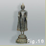 The Pala-ruled areas of northeastern India were the last stronghold of Buddhism in India. In southern India, the popularity of Buddhism had waned by the fifth century C.E., when Hinduism became the dominant religion; the few Buddhist communities and monasteries that survived until the twelfth or thirteenth centuries, was due, in part, to their location near port cities on the maritime trade routes. Their continuous contact with Southeast Asian nations is evident from inscriptions; like Buddhist monuments and institutions in eastern India, those in the south benefited from money sent by distant foreign monarchs eager to prove their piousness and improve their karma. The Asia Society Museum has an impressive eleventh-century southern Indian bronze standing Buddha (Fig. 10), whose flame-shaped symbol of the Buddha's expanded knowledge (ushnisha) atop the head is a distinctive southern Indian feature that spread from India to Sri Lanka, Burma (Myanmar), and Thailand. This type of ushnisha is said to represent the true knowledge that hovers like a flame above the Buddha's head.