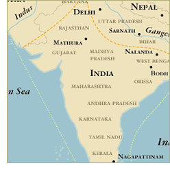 The Buddha spent most of his life teaching in the eastern Ganges region of India. This area later became dotted with pilgrimage sites associated with his life and home, and some developed into monasteries and universities. These centers attracted devotees from the far corners of Asia; they came to India for religious instruction and pilgrimage and returned home with memories and images of Indian Buddhism. Two of the empires that ruled this region had a particularly strong influence on Buddhist imagery both in India and abroad: the Gupta empire (ca. 4th – 6th century) and the Pala empire (ca. 8th – 12th century).