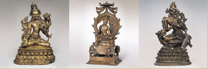 Buddhist images are remarkably recognizable, regardless of their country or period of origin. They are usually made according to descriptions found in Indian texts intended to help the practitioner mentally invoke the form of the deity. These texts provide the artist with the basic schema of the image, detailing what an image should look like, from the posture, gesture, and color of the deity, to the attributes (objects he or she holds that symbolize specific powers or knowledge). Further similarities that can be seen among the Buddhist objects in the Asia Society's collection stem from the tendency of artists working elsewhere to emulate Indian models. Coming from the homeland of Shakyamuni Buddha and his teachings, such models held religious authority. The most prominent differences of period or culture of origin are usually seen in the images' details of costume, hairstyle, jewelry, body type, and facial characteristics. However, as is evidenced by the array of styles represented by the objects in the collection, artists working outside India did not simply copy Indian models-they created their own distinctive works. The artistic result of a religion that spread thousands of miles across a multiethnic landscape is a corpus of images based on a similar set of beliefs but marked by regional personalities.