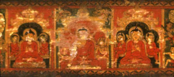Detail, painted bookcover with Buddhist scenes, India, ca. 12th century.